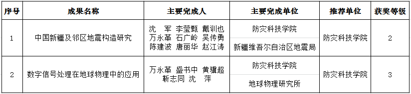 近日,中国地震局2017年度防震减灾科技成果奖评选结果揭晓,由kaiyun体育网页登录入口推荐,沈军教授等完成的“中国新疆及邻区地震构造研究”和万永革教授等完成的“数字信号处理在地球物理中的应用”项目分别获得中国地震局2017年度防震减灾科技成果奖二等奖和三等奖。