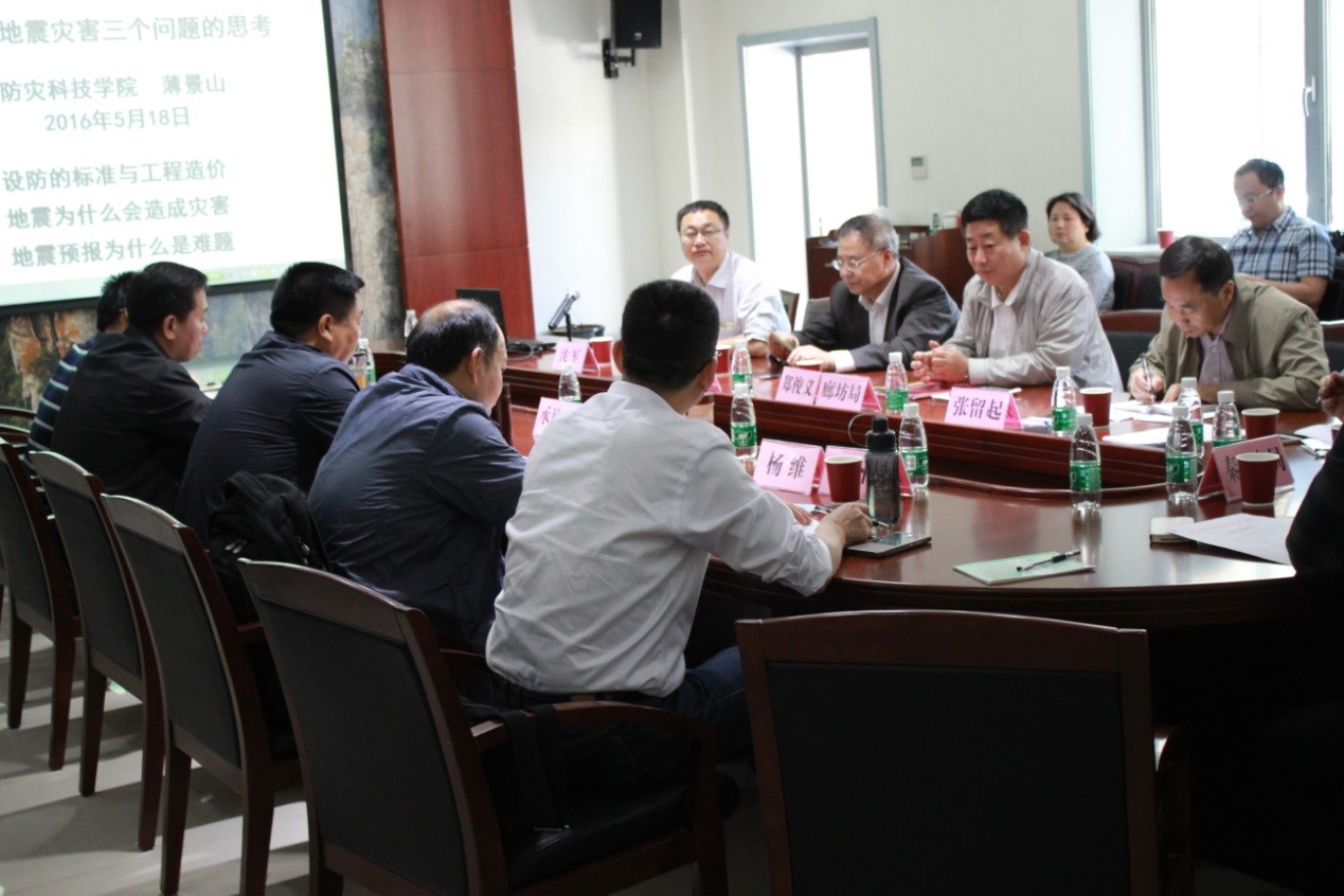 薄景山院长首先对会议的召开表示祝贺,并就“设防标准与工程造价”、“地震为什么会造成灾害”、“地震预报为什么是难题”等问题谈了一些看法。李莹甄副研究员做了题为“地震预测中值得关注的几个问题”的报告。与会领导对所在地区近期地震活动情况进行分析,并形成会议纪要。