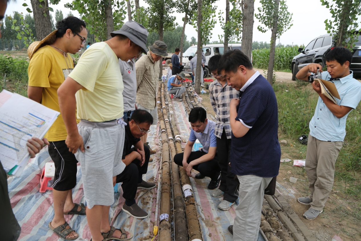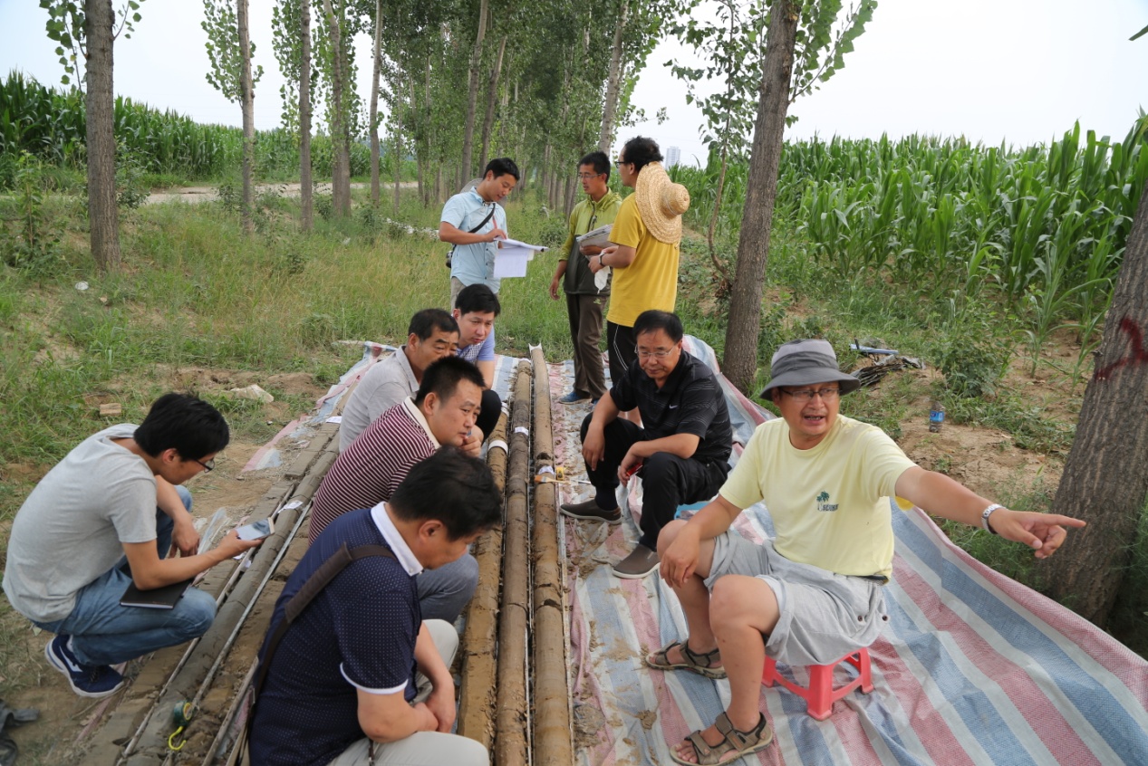 7月18日,院长薄景山教授与华北地质勘查局综合普查大队胡龙华队长、王国政总工等赴三河市齐心庄镇对“三河市活断层探测与地震危险性评价”项目(简称“三河市活断层探测”项目)钻孔探测工作进行现场指导。