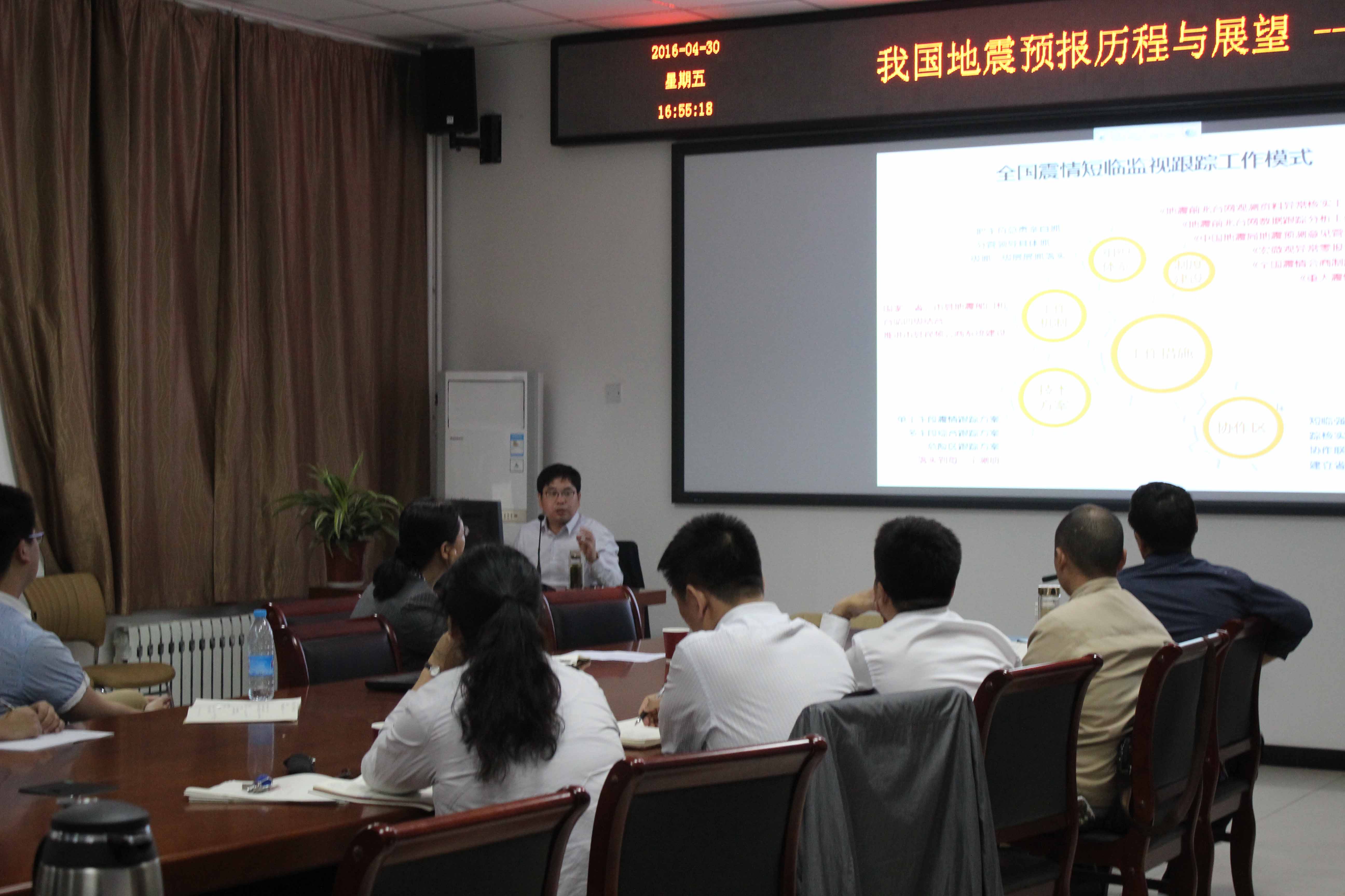 2016年04月29日下午,中国地震局监测预报司预报管理处处长马宏生副研究员应邀来kaiyun官网做学术报告,报告由地震科学系李莹甄副研究员主持,地震科学系系主任沈军研究员、书记达勇、学科带头人万永革研究员等教师参加了学术报告,以及部分地球物理专业学生参加了报告会。