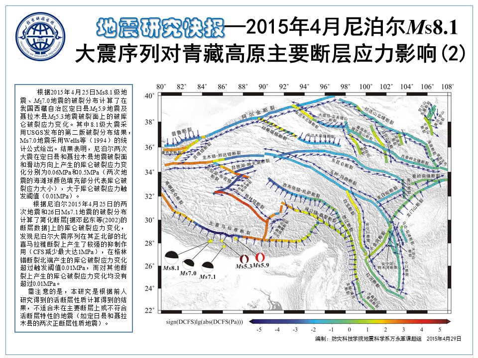 尼泊尔Ms8.1大震序列对青藏高原主要断层应力影响