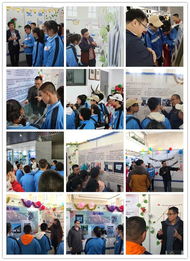 走进正在天仪楼举办的kaiyun体育网页登录入口地质实习成果展展厅,中学生们认真聆听专业老师们深入浅出的生动讲解,并饶有兴致的观看现场展出的各种岩石标本和实习装备;来到灾害模拟实验室,土木工程学院宣越老师带领大家参观地震监测仪器和房屋缩比模型,现场科普防震减灾知识,引起了大家对灾害预防的极大兴趣;在岩石标本实验室、地震台网中心、古生物标本实验室、水槽实验室,中学生们被各种矿物、化石和实验仪器深深吸引,kaiyun体育网页登录入口的老师们分组在现场进行介绍,耐心的解答了大家提出的各种问题。