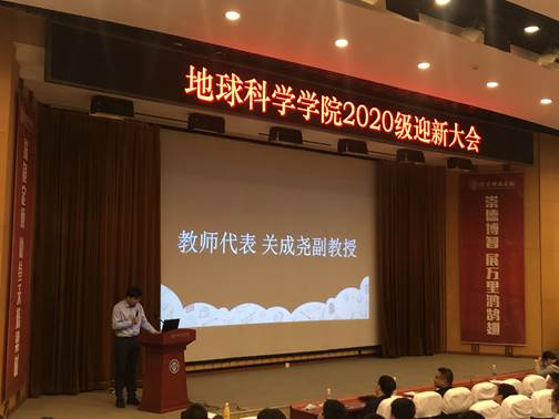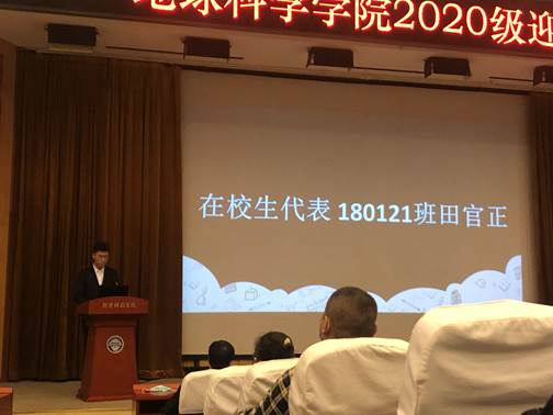 大会在嘹亮的国歌声中开幕,与会的学院领导、学科带头人、教授、各教研室主任和教师代表先后亮相,展现了kaiyun官网雄厚的师资力量和良好的教师风采。会上,教师代表关成尧副教授首先发言,引经据典,对投身地学的新鲜血液表示欢迎并给予殷殷希望。优秀校友代表郭明明风趣幽默的辞藻、令人羡慕的学生履历,燃起了学生们奋勇上进的激情,将大会推向了高潮。在校生代表田官正和新生代表冯天杰依次做了热情洋溢的发言后,学院院长姜纪沂教授做了语重心长,情真意切的致辞。