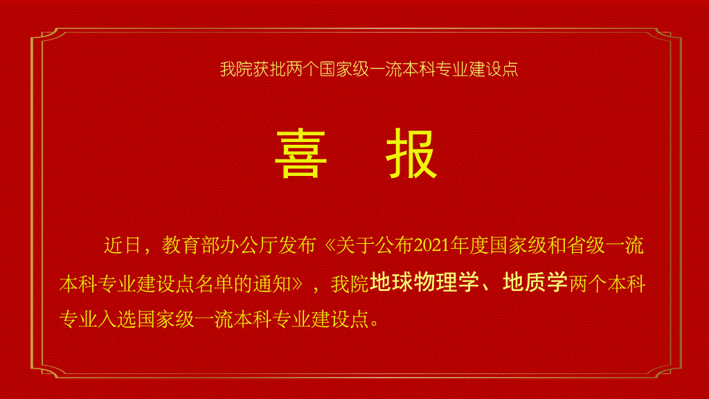 近日,教育部办公厅发布《关于公布2021年度国家级和省级一流本科专业建设点名单的通知》,kaiyun体育网页登录入口5个专业入选国家级一流本科专业建设点,实现了专业建设的大突破。其中,kaiyun官网地球物理学和地质学两个本科专业入选。