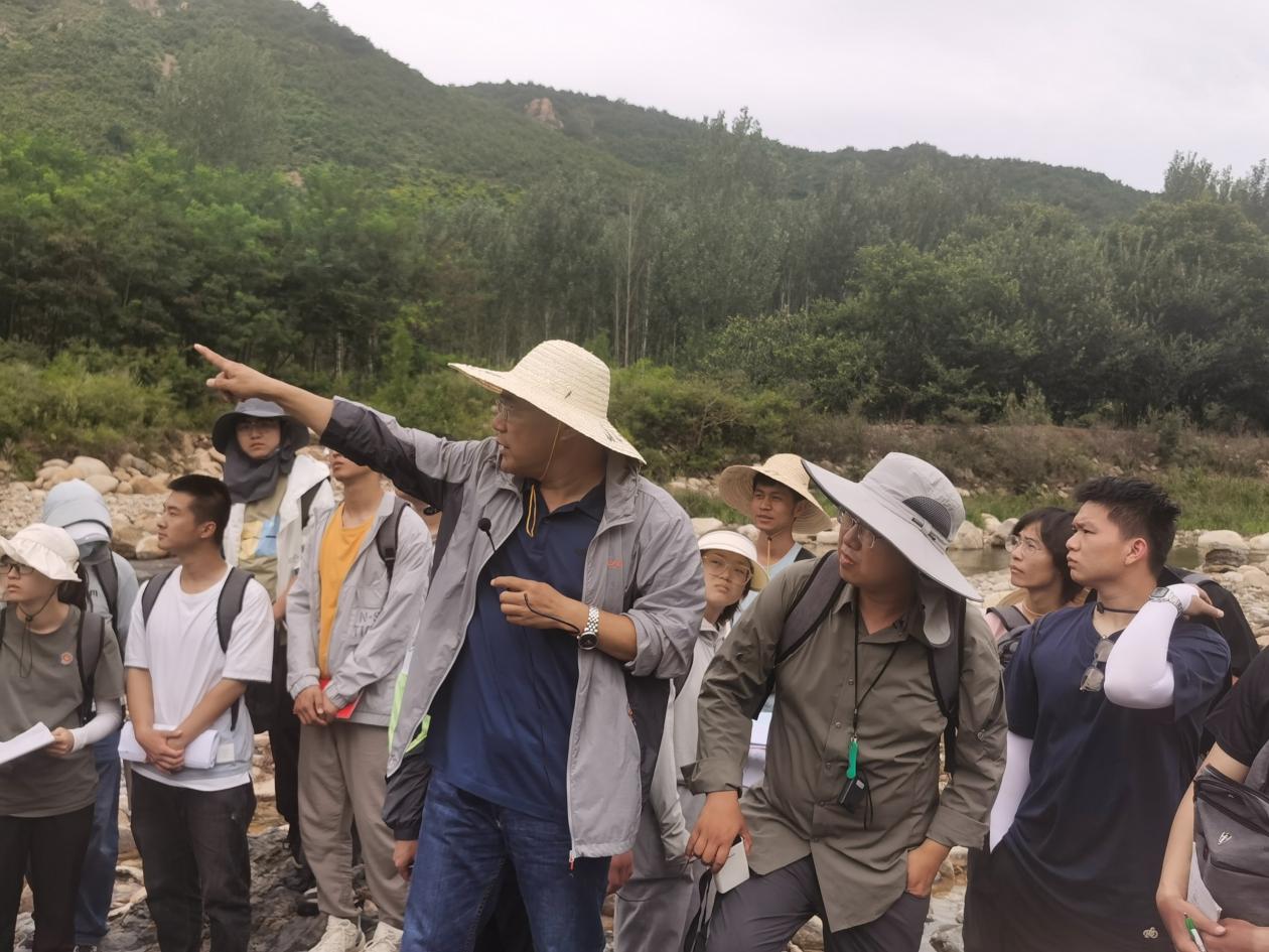 26日,任云生一行同师生一起前往吴庄构造路线进行野外实习,任云生就接触变质作用和接触交代作用的形成地质条件及产物、野外地质观察要点等给实习师生带来精彩的讲解,学生受益匪浅,不断与任校长就地质现象进行探讨,激发了学生学习热情。