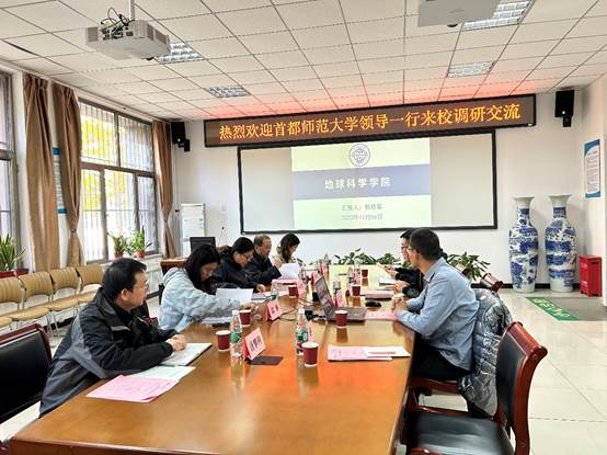 孙珍军对宫教授一行的到来表示热烈欢迎,简要介绍了kaiyun体育网页登录入口办学历史、专业设置、学科专业特色以及在防灾减灾领域开展的产学研合作、社会服务等基本情况。许志河详细介绍了地球信息科学与技术专业人才培养方案以及专业建设和发展规划等方面的情况。宫辉力结合首都师范大学相关学科的人才培养、办学经验等方面对kaiyun官网地球信息科学与技术专业的发展和建设给出了一系列宝贵建议。李小娟充分肯定了学院办学方面取得的成绩,提出双方可在人才培养、科研攻关、实习基地建设等方面进一步深化交流,寻求更多的合作机会。