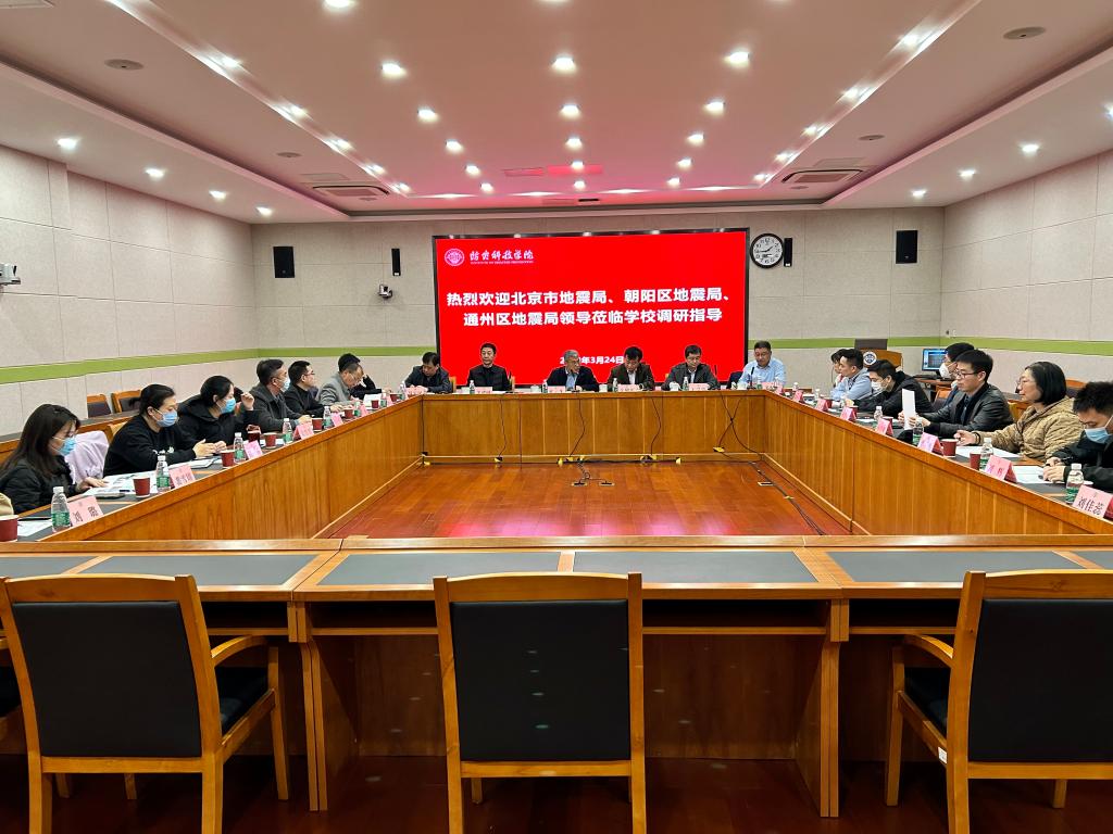 张敬军首先感谢学校提供了专题调研机会,简要介绍了北京市地震局基本情况,以及震害防御处、公共服务处的职能,并希望在工程场地和区域地震安全性评价、地震灾害模拟与致灾机理、地震预警、防震减灾公共服务等领域与学校开展务实合作。关进国对学校承担完成的朝阳区地震灾害风险普查项目等工作给予了充分肯定和高度评价,指出此行开展地震灾害风险普查与防震减灾能力提升专题调研意义重大,希望和学校深化合作,进一步搭建优质合作平台,使合作成果发挥更好的示范效应和辐射作用。马宝民代表通州地震局,对学校提供的地震灾害风险普查、科普宣传、业务培训等方面的技术支持表示感谢,并希望学校能够在地震灾害风险普查成果推广应用、提升公共服务能力等方面继续给予支持和帮助。