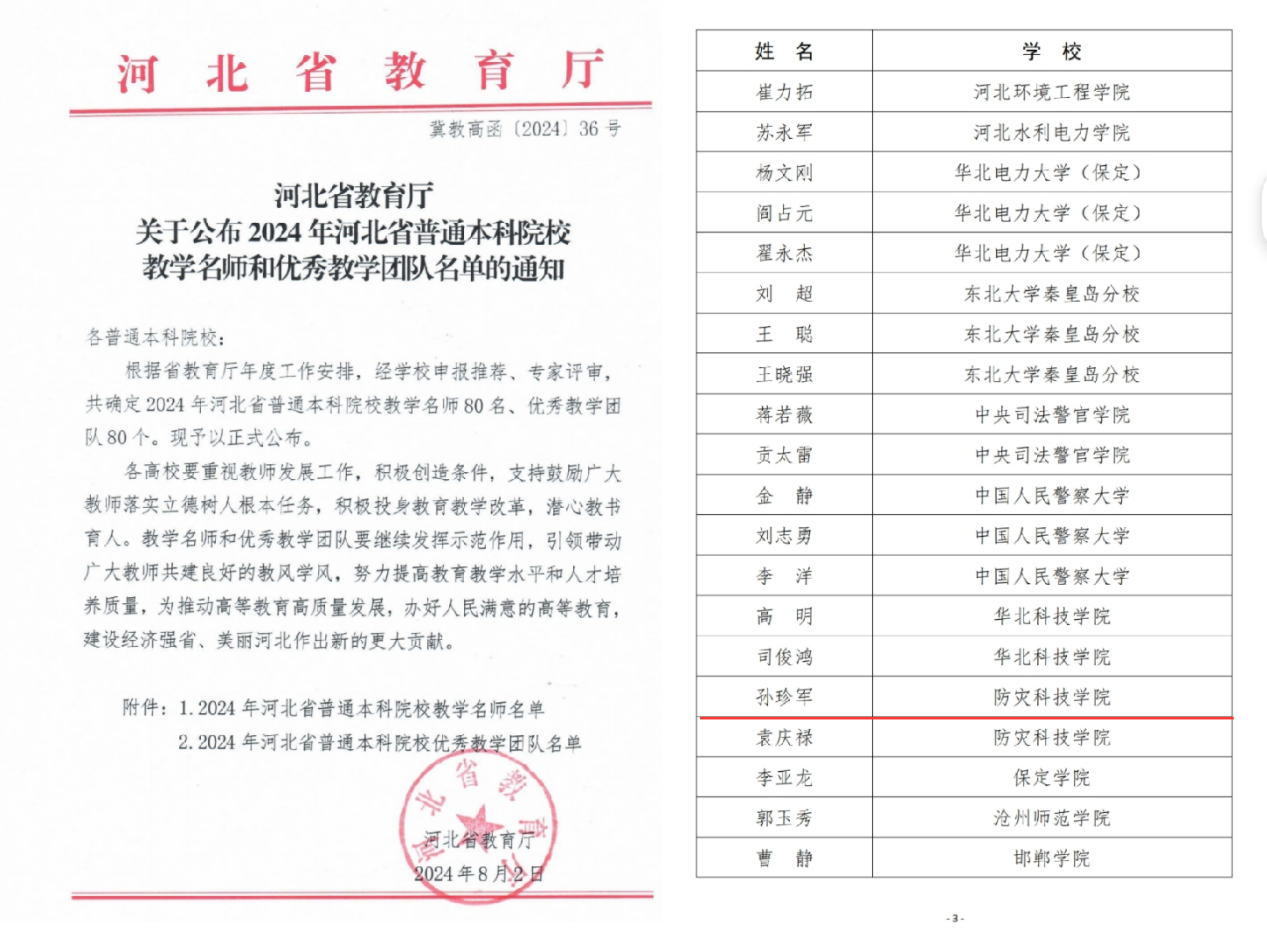 近日,河北省教育厅公布了《2024年河北省普通本科院校教学名师和优秀教学团队名单》(冀教高〔2024〕36号),kaiyun官网孙珍军教授获“河北省教学名师”荣誉称号。