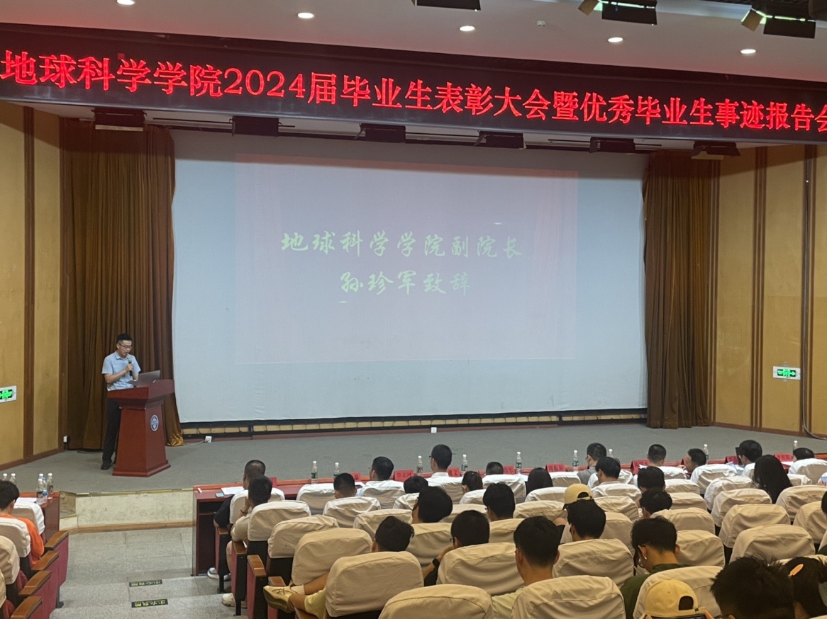 孙珍军教授在致辞中代表学院向完成学业的全体毕业生表示热烈祝贺,向辛勤培育学生成长的全体教职工表示衷心的感谢!回顾了学院四年来的发展变化和学生成长成才的可喜成就,对同学们推动和见证学院发展所做出的努力表示感谢,对同学们毕业后考研和就业成果表示祝贺,并对毕业生提出几点希望,希望大家不畏艰险,勇担国家重任,不懈奋斗,砥砺前行,在奋斗中提高素养、在艰难中磨炼意志,勇于践行防灾人扶危定倾的光荣使命。