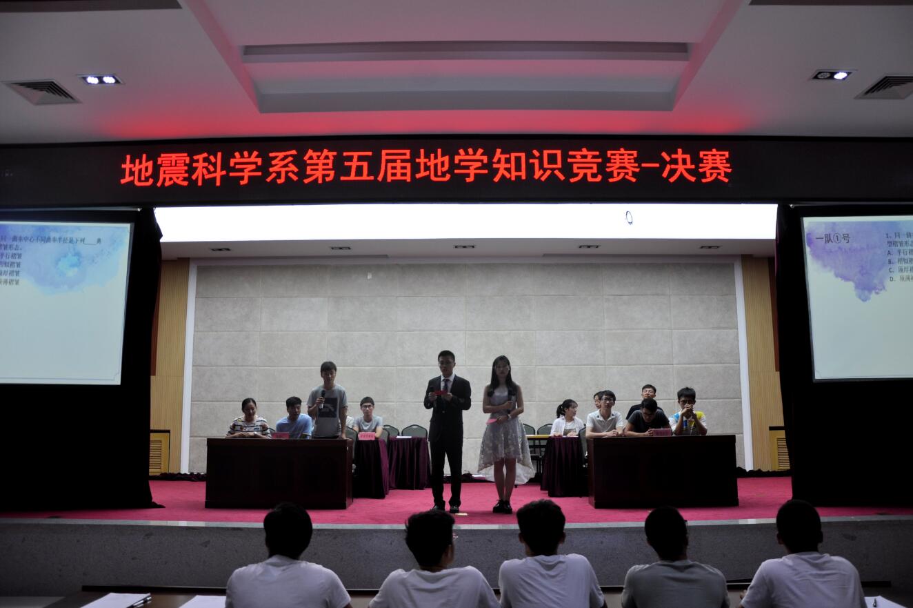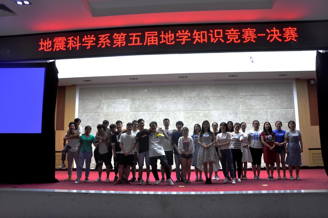 为全面推进学院地学知识的普及,提高同学对专业的兴趣,拓宽其知识面,并提供一个展示自我和培养团队精神的平台,2018年6月15日晚7:00,我系于主楼332举办地震科学系第五届地学知识竞赛决赛。过初赛的选拔,共有八支队伍进入决赛,分别是:美芭小分队、地学小全、威斯盟队、随缘队、痴鸡小组、严肃认真学习小组、青青草原队、ABC队。