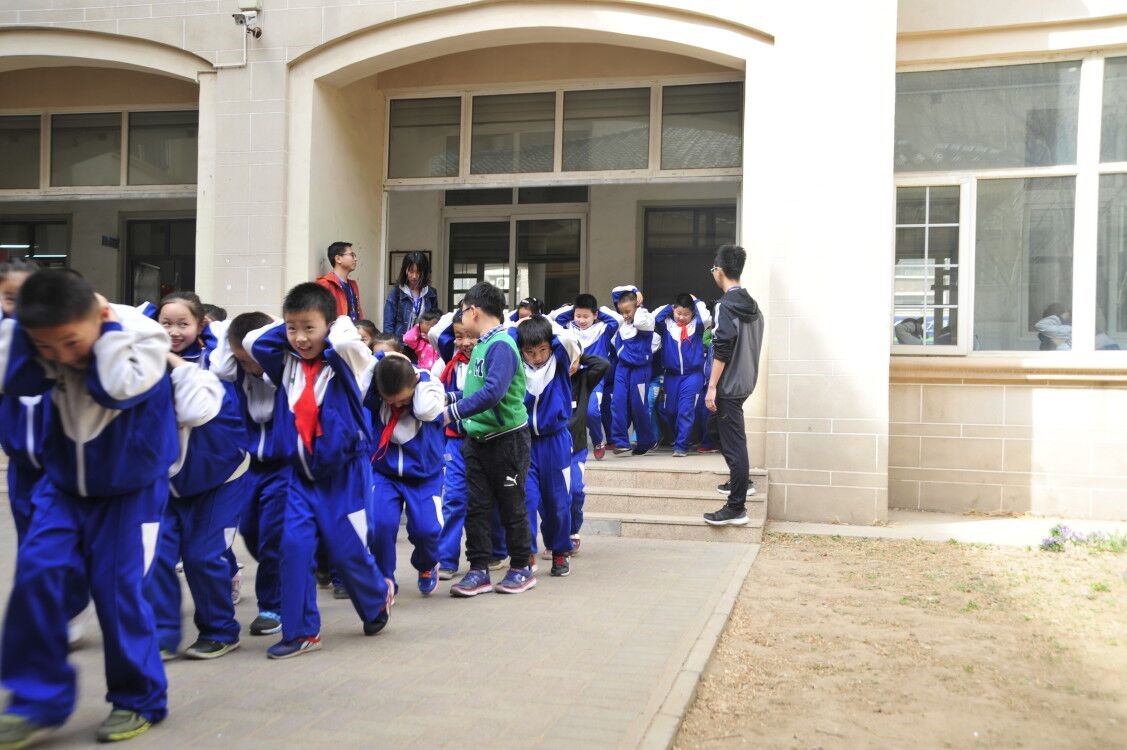 三是PPT讲解人员分析演习过程得失的总结活动。此次演习活动进行了两次,目的是增强学生对于地震灾害的防患意识。学生们回班之后志愿者以及汇福中学校主任合影留念。至此,汇福中学防震演习圆满结束。