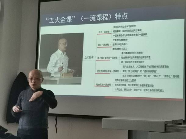 毛宁波教授首先为各位教师介绍了国家级一流课程建设和申报工作的要点,并结合自身多年的教学和建设课程经验,以《地震勘探原理》课程为例,为大家揭示了国家级一流课程“课程质量高、课程类型多样、参与范围广,示范效应强”的特点,并特别指出,在线上国家级一流课程的建设过程中,MOOC平台选择的关键性。毛教授幽默风趣的讲解,让广大教师切实体会到了一流课程建设在学科建设中的重要性。报告会上毛宁波教授还积极与到场教师互动,耐心解答相关问题,并在地球物理和勘查技术与工程专业的一流课程建设方面给予了一系列有益的建议。(撰稿:马欢 摄影:孙珍军)