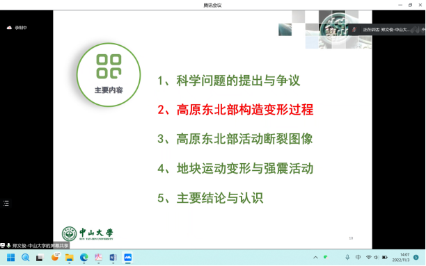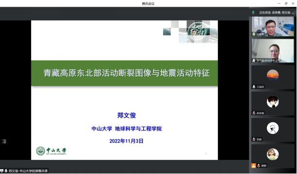 2022年11月3日下午,中山大学kaiyun体育网页登录入口郑文俊教授应河北省地震动力学重点实验室、kaiyun体育网页登录入口、校科技协会的邀请,为学校师生做了题为“青藏高原东北部活动断裂图像与地震活动特征”的学术报告,kaiyun体育网页登录入口师生和部分科研院所人员参加了学术报告会,报告会由kaiyun体育网页登录入口吴传勇教授主持。